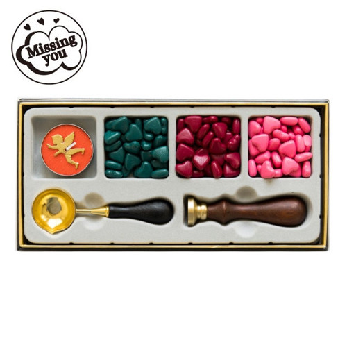 Набір для сургучних печаток, 3 кольори, свічка, ложка, печатка Missing You